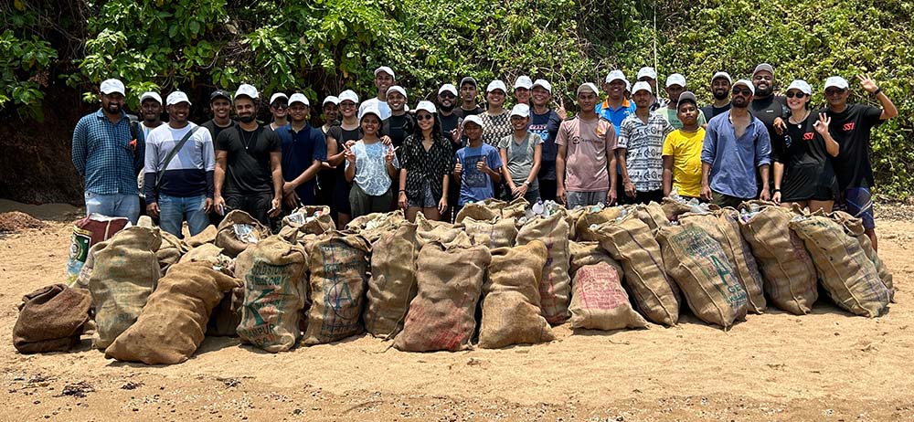 We have been conducting Underwater and Beach Clean Ups since 1996. Our team accompanies divers and non-divers to clean the beach on St. George Island. In 2024, students from Navy Children School, Progress High School, ICAR, and MOCA helped collect 50 sacks of trash, totaling 460 kgs. We recovered 258 kgs of recyclables like cast iron, glass, PET bottles, and hard plastics, sent to local recyclers. The 202 kgs of non-recyclables, including low-value plastics, thermocol, nylon fish nets, rubber, and cloth, were sent for proper disposal. Nandan and Alpana Chandavarkar sponsored the cleanup event, while Clinton Vaz from vRecycle covered all transport, processing, and disposal costs of the collected trash.